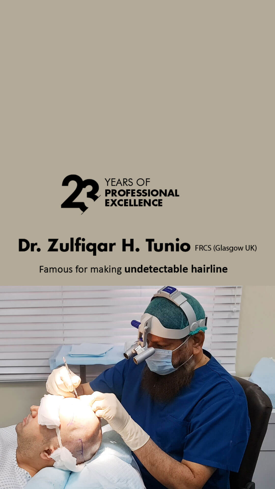 Dr. Zulfiqar Ali Tunio, F.R.C.S. (Glasgow), brings nearly two decades of expertise in hair restoration services.